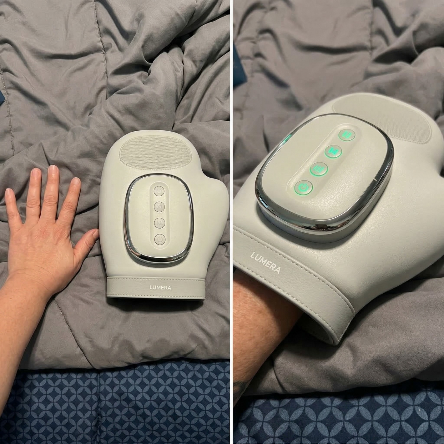 By combining soothing heat, multi-level compression, and targeted massage movements, the Lumera massager replicates techniques that therapists use to: